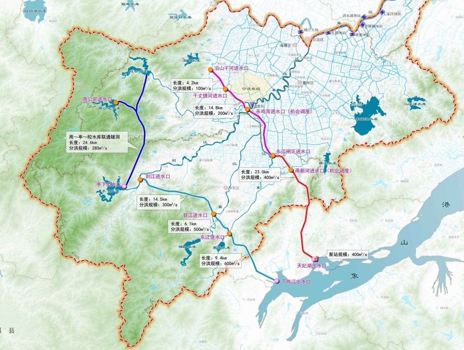 甬江流域南排通道工程項(xiàng)目建議書(shū):該工程為《甬江流域防洪治澇規(guī)劃(2021-2035 年)》確定的甬江流域最大的分洪工程,工程擬設(shè)置東、西兩條分洪線(xiàn)路,總長(zhǎng)約96.6公里,總規(guī)模1000立方米每秒。工程實(shí)施后,與規(guī)劃內(nèi)工程聯(lián)合運(yùn)用,將有效提升流域和區(qū)域防洪排澇能力。