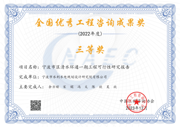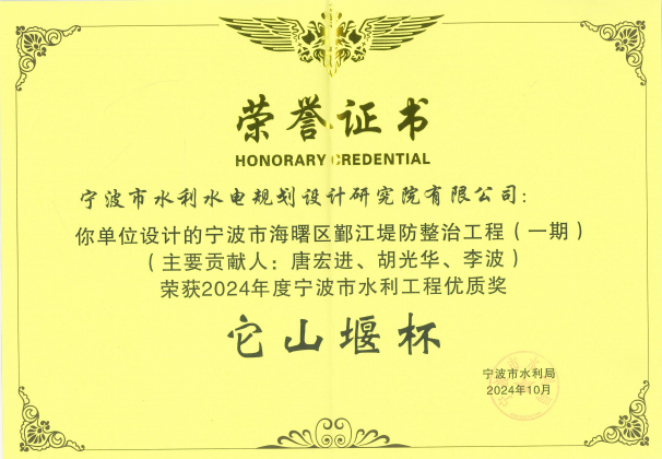 在工程項(xiàng)目方面,獲得2022年度全國(guó)優(yōu)秀工程咨詢(xún)成果獎(jiǎng)、2024年度寧波市優(yōu)秀勘察設(shè)計(jì)獎(jiǎng)、2024年浙江省勘察設(shè)計(jì)行業(yè)優(yōu)秀勘察設(shè)計(jì)”綜合類(lèi)成果獎(jiǎng)、寧波市優(yōu)秀水利工程設(shè)計(jì)二等獎(jiǎng)、“浙江省文明標(biāo)化工地”稱(chēng)號(hào)、“2024年度寧波軌道交通市域鐵路工程立功競(jìng)賽先進(jìn)集體”等各類(lèi)獎(jiǎng)項(xiàng)十余項(xiàng)。
