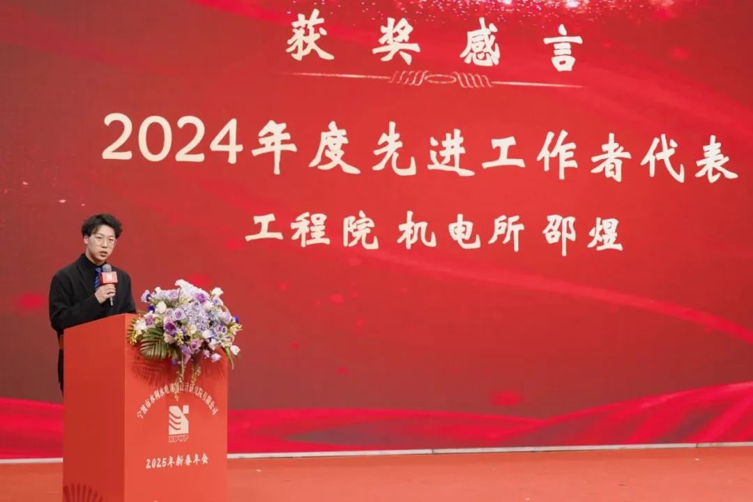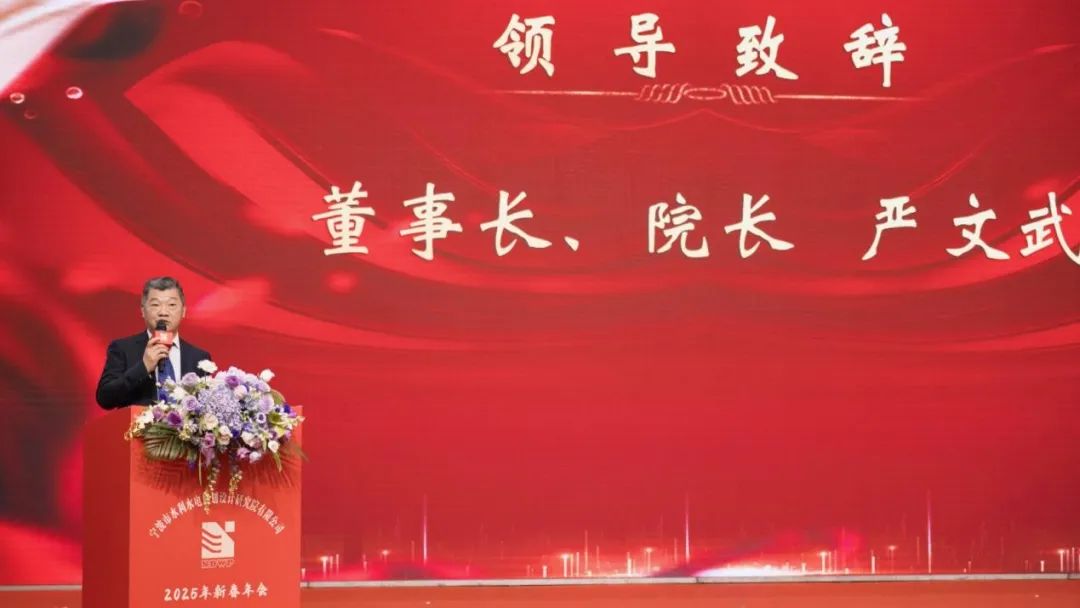 我院董事長(zhǎng)、院長(zhǎng)嚴(yán)文武的致辭為晚會(huì)拉開(kāi)序幕。嚴(yán)院長(zhǎng)表示,2024年,全院團(tuán)結(jié)一致,協(xié)同發(fā)力,攻堅(jiān)克難,用一張優(yōu)秀的成績(jī)單為我院新征程吹響了號(hào)角;2025年,我院新大樓的落成,這是我院發(fā)展的新的里程碑,也是邁向新征程的起點(diǎn),希望所有員工共享新家園,愛(ài)護(hù)新家園,繼續(xù)傳承和發(fā)揚(yáng)寧波院人堅(jiān)持不懈的優(yōu)良傳統(tǒng),再創(chuàng)佳績(jī)!最后,嚴(yán)院長(zhǎng)對(duì)所有員工的辛勤付出表示感謝,致以祝福,祝愿寧波院在2025年乘風(fēng)破浪,再創(chuàng)輝煌!