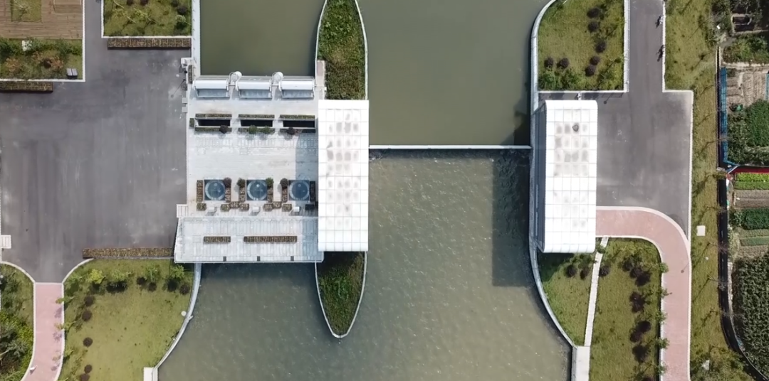 工程規(guī)劃與區(qū)域發(fā)展規(guī)劃高度融合,打通了原洞船河與姚江之間的“斷頭路”,提高了鄞西平原城區(qū)的防洪排澇能力。項目建筑設計與周邊環(huán)境完美結合。泵站及閘門上部采用無廠房設計,水泵機組采用立式潛水機組,閘門采用底軸驅(qū)動翻板門,泵站上下游視野通透,觀感效果佳。管理房屋頂設計為綠化屋頂,管理房隱藏于周邊綠化之中,滿足姚江岸高標準景觀要求。生態(tài)河道設計符合人文和諧之美。護岸采用干壘生態(tài)擋塊,中間預留魚槽設計,充分體現(xiàn)了生態(tài)環(huán)保設計理念。