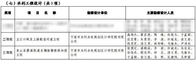 近日,2023年度寧波市優(yōu)秀勘察設計獎評選結果出爐,我院設計的五江口閘及上游配套河道工程和象山縣爵溪街道東塘海塘維修加固工程分別榮獲水利工程設計組二等獎和三等獎!