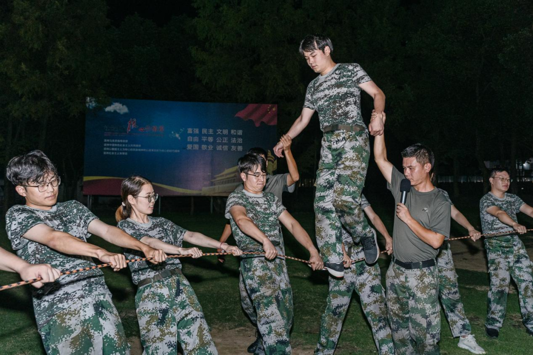 隊列訓練、盲人方陣、群龍取水、飛盤運動、綜合演練……培訓期間,新員工們分為四個小組,參與了一系列豐富多彩的團隊拓展活動,在汗水中鍛煉身體,在活動中迅速破冰,在挑戰(zhàn)中超越自我,在合作中收獲友誼,有效增強了團隊的向心力和凝聚力,感受到寧波院團結拼搏、合作共贏的企業(yè)文化和企業(yè)精神。