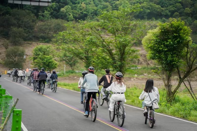 騎行環(huán)節(jié)中,小伙伴們?cè)诰G水青山間放松身心,自由交流,開(kāi)啟了一場(chǎng)輕松愉悅的青春之約?;顒?dòng)尾聲,小伙伴們?cè)谖麽畮?kù)合影留念,互相添加聯(lián)系方式,更進(jìn)一步交流了想法、拓寬了社交圈。