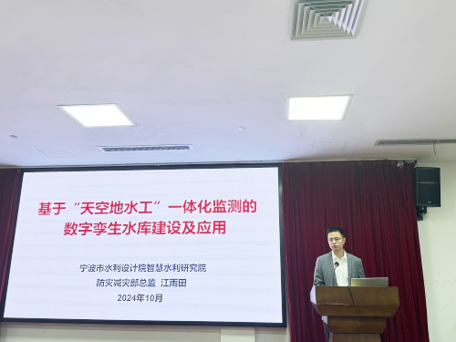 現(xiàn)場,我院智慧水利研究院防災(zāi)減災(zāi)部總監(jiān)江雨田受邀就“基于‘天空地水工’一體化監(jiān)測的數(shù)字孿生水庫建設(shè)及應(yīng)用”為題進(jìn)行了分享,從“天空地水工”一體化監(jiān)測感知網(wǎng)的要素構(gòu)成、如何建設(shè)數(shù)字孿生水利、數(shù)字孿生水利工程建設(shè)的關(guān)鍵技術(shù)、“數(shù)字孿生周公宅-皎口梯級水庫”數(shù)字孿生應(yīng)用實例等方面介紹,為參會人員帶來了一場圖文并茂、知行兼?zhèn)?、鞭辟入里的專題講座。